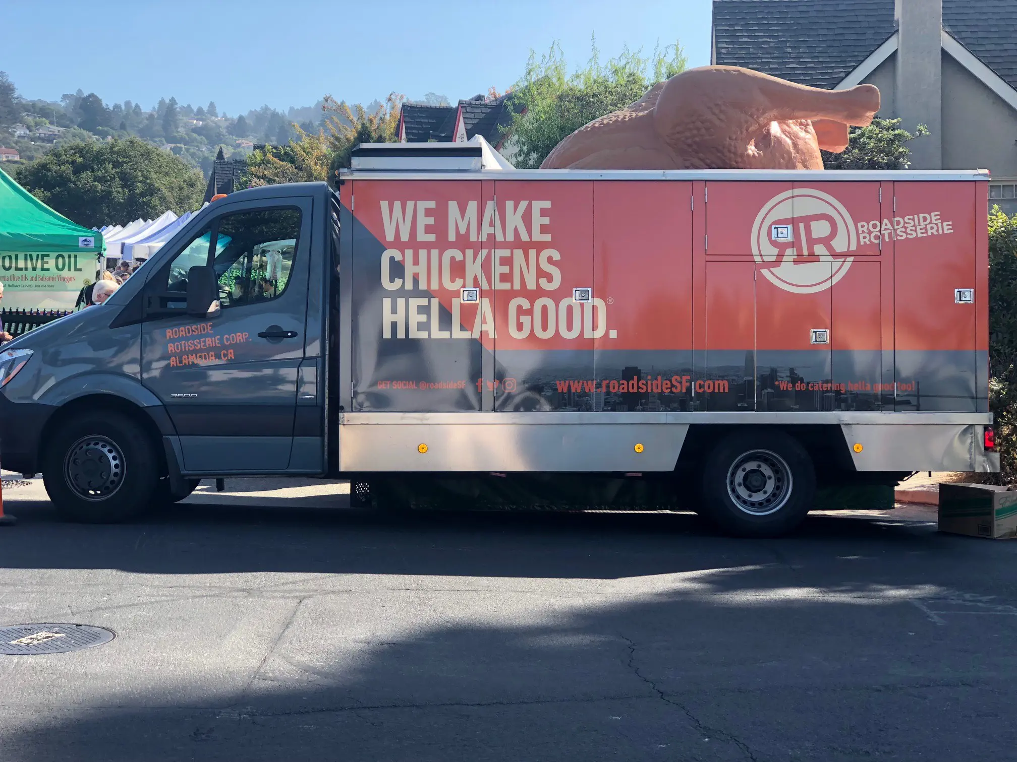 Roadside Rotisserie is a San Francisco–based food truck known for its bold, flavor-packed approach to slow-roasted meats, especially its juicy rotisserie chicken finished with smoky, savory seasoning. Recognizable by its bright orange logo and clean, modern design, the truck serves gourmet-style comfort food at breweries, food truck events, and private gatherings.